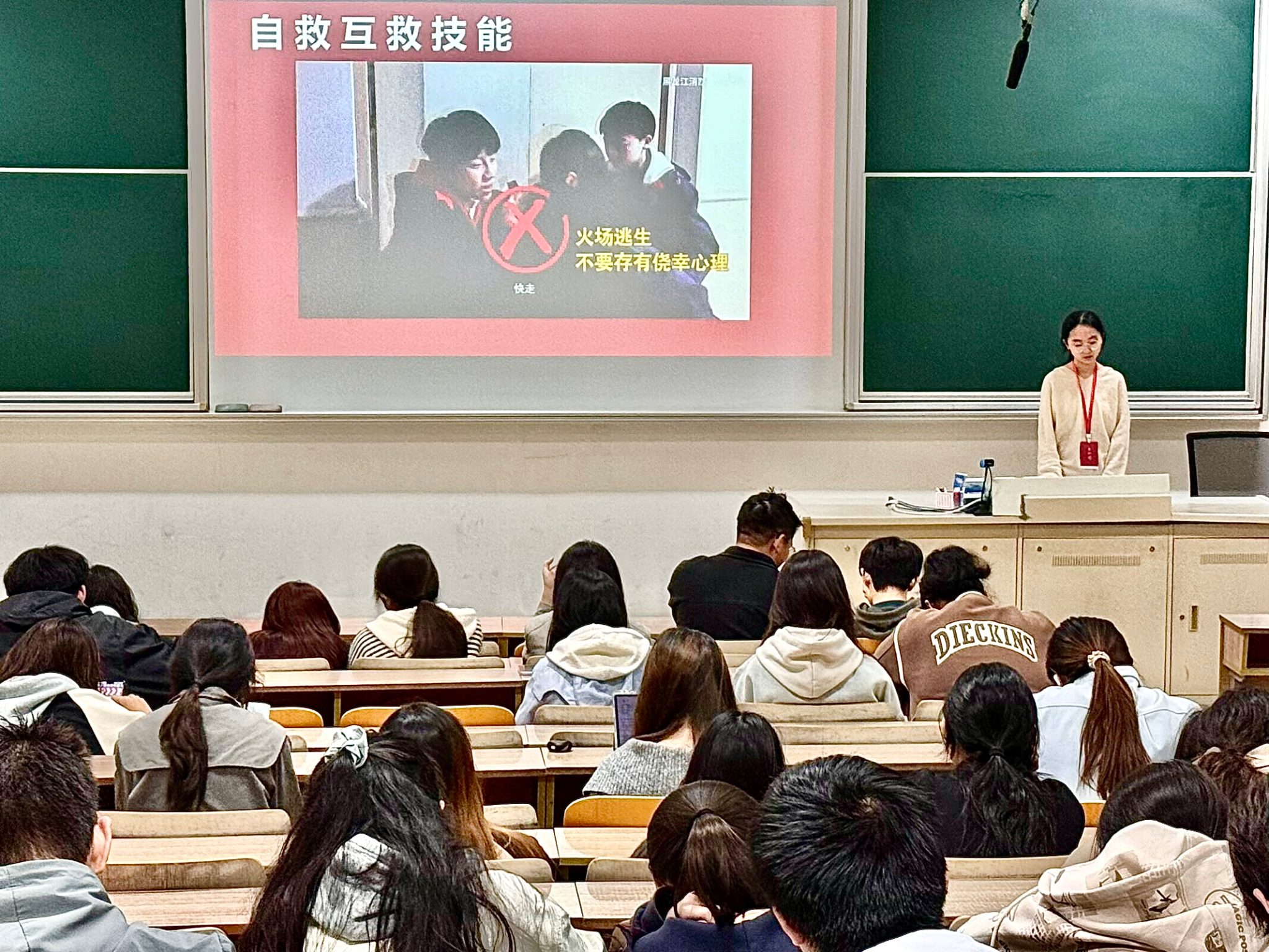团课中,同学们系统学习了火灾常见成因、针对性预防措施,以及各类消防器材与安全标识的相关知识。通过专题视频教学,大家详细掌握了干粉灭火器的正确使用方法,读懂了疏散通道标志、禁止吸烟标识等“安全密码”的含义与作用。此外,通过自救互救技能教学视频,同学们还学习了火灾发生时的逃生技巧与互助方法,进一步提升了应急处置能力。