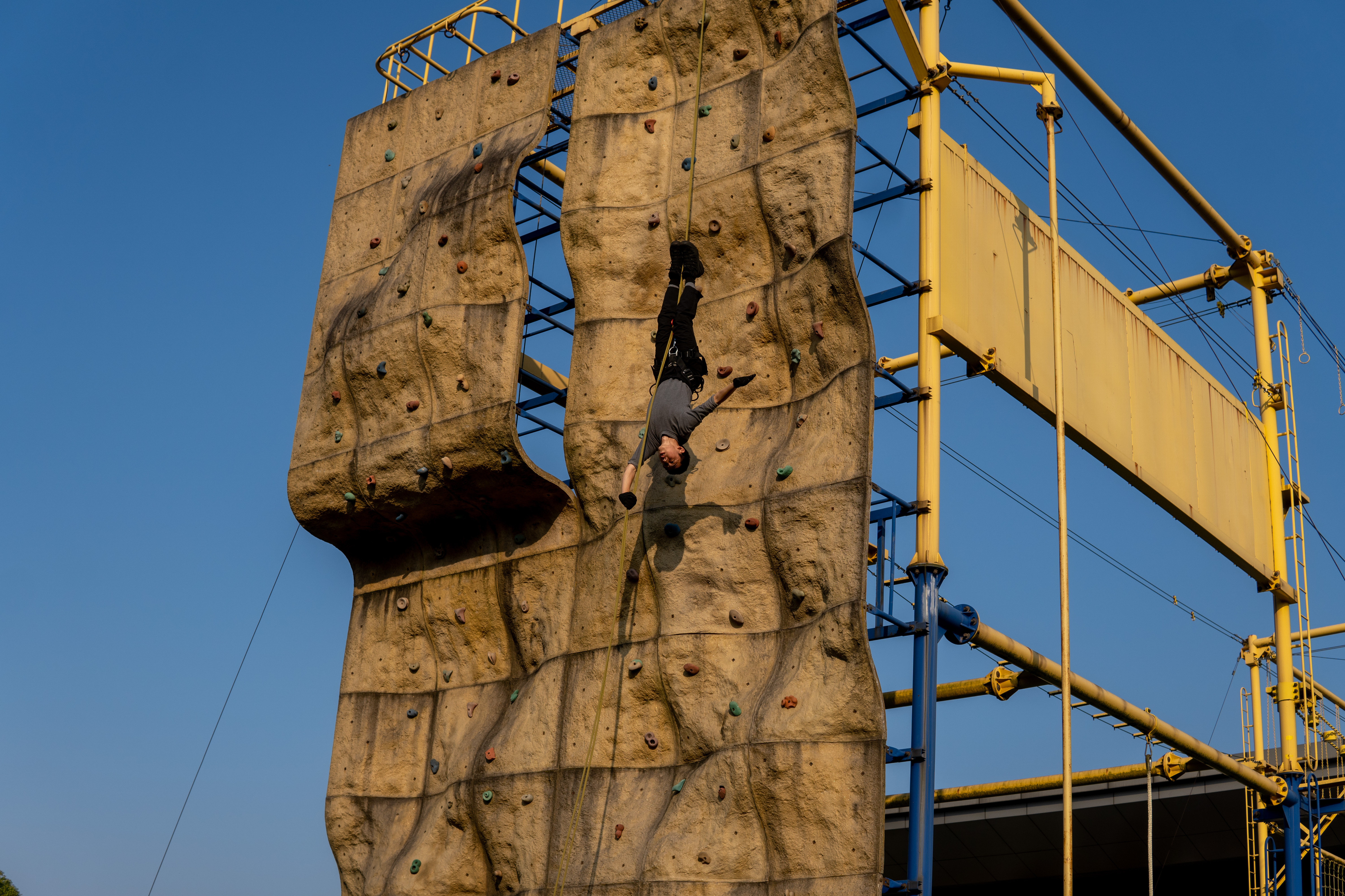 紧接着,警务障碍场体验活动令本次活动渐至佳境。我院学生被特战社相关人员带领参观警务障碍场并进行现场演示,体验基础的警务技能训练。最后,特战社的成员还特别为我们展示战术索降,通过不同的方式为我们展示了警院学子的风采。纵使只是获得警务技能的短暂体验,我院学生却在实操与观摩间收获颇丰,每一处细节皆成宝贵所得。