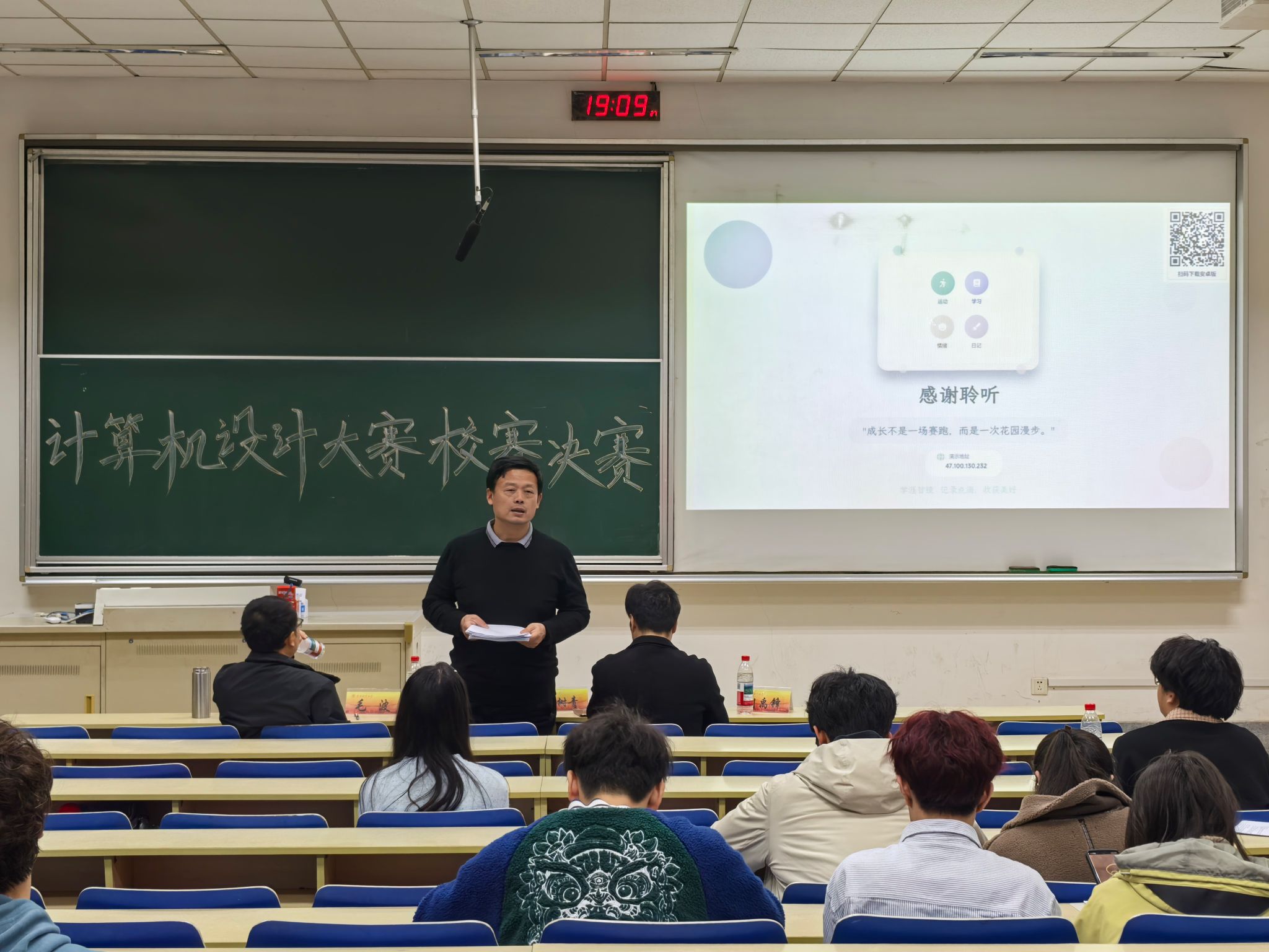 计分期间,李树青副院长对本次比赛作全面总结。他先充分肯定了各团队的出色发挥,强调创新项目应以技术为核心驱动力解决实际问题,关注商业价值时凸显技术创新性与可行性。同时,他提醒参赛者提交作品时精准调整报告内容,使用AI技术要融入自身思考。对于作品优化,建议团队结合用户需求、强化创意设计、注重软硬件融合、做好成品展示与包装。此外,强调文档撰写要规范,遵循学术标准,避免因格式疏漏错失机会。最后,鼓励参赛者激发创新意识,用技术赋能应用需求,以科技服务社会发展。