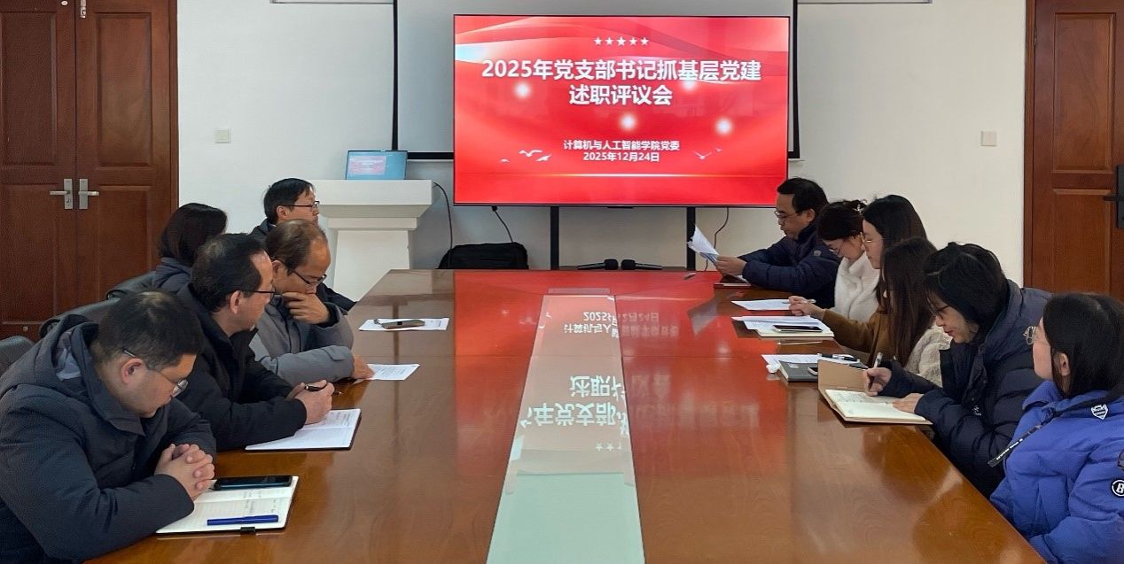 根据《中共中央组织部关于做好2025年度党委(党组)书记抓基层党建述职评议考核工作的通知》(组通字〔2025〕33号)精神和江苏省实施细则规定,按照省委教育工委《转发<中共中央组织部关于做好2025年度党委(党组)书记抓基层党建述职评议考核工作的通知>》和《南京财经大学二级党组织书记抓党建工作述职评议考核办法》要求,计算机与人工智能学院于12月24日下午在德业楼404会议室召开党支部书记抓基层党建述职评议会。学院领导班子、院党委委员、基层党支部书记、各支部党员代表及群众代表参会,会议由院党委书记张阳军主持。