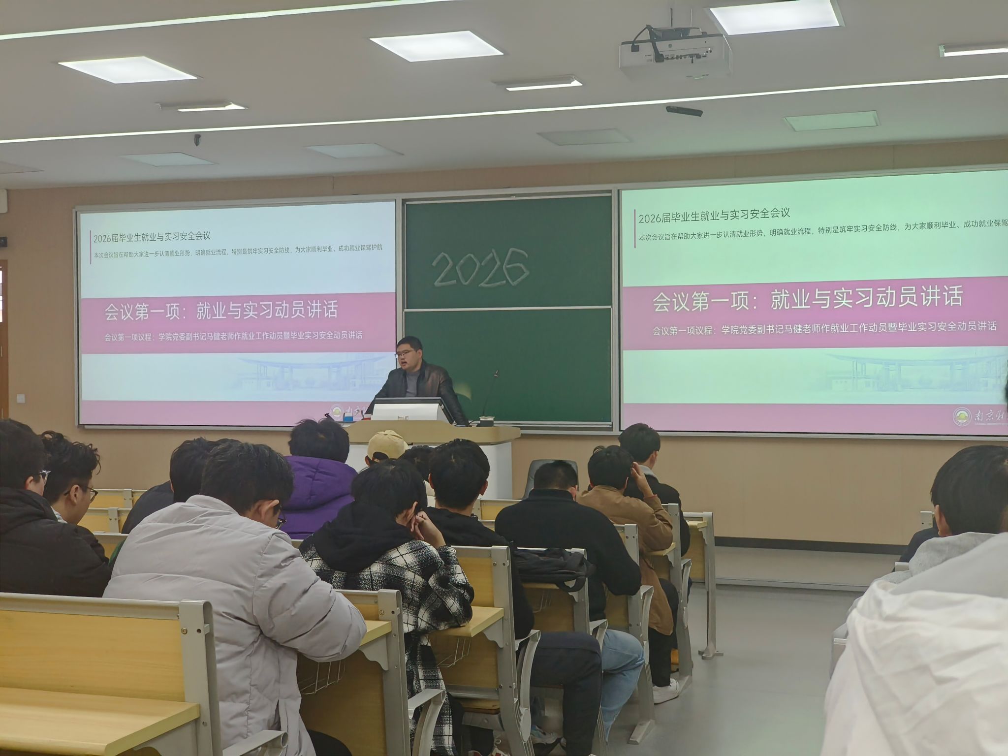 为扎实推进学院2026届毕业生就业工作,强化毕业实习安全管理,引导学生明晰毕业流程、把握就业关键节点,11月24日下午,我院在仙林校区博观楼JB-202组织召开2026届毕业生就业工作推进会暨毕业实习安全教育会。学院2026届全体毕业生和毕业班辅导员参加会议。