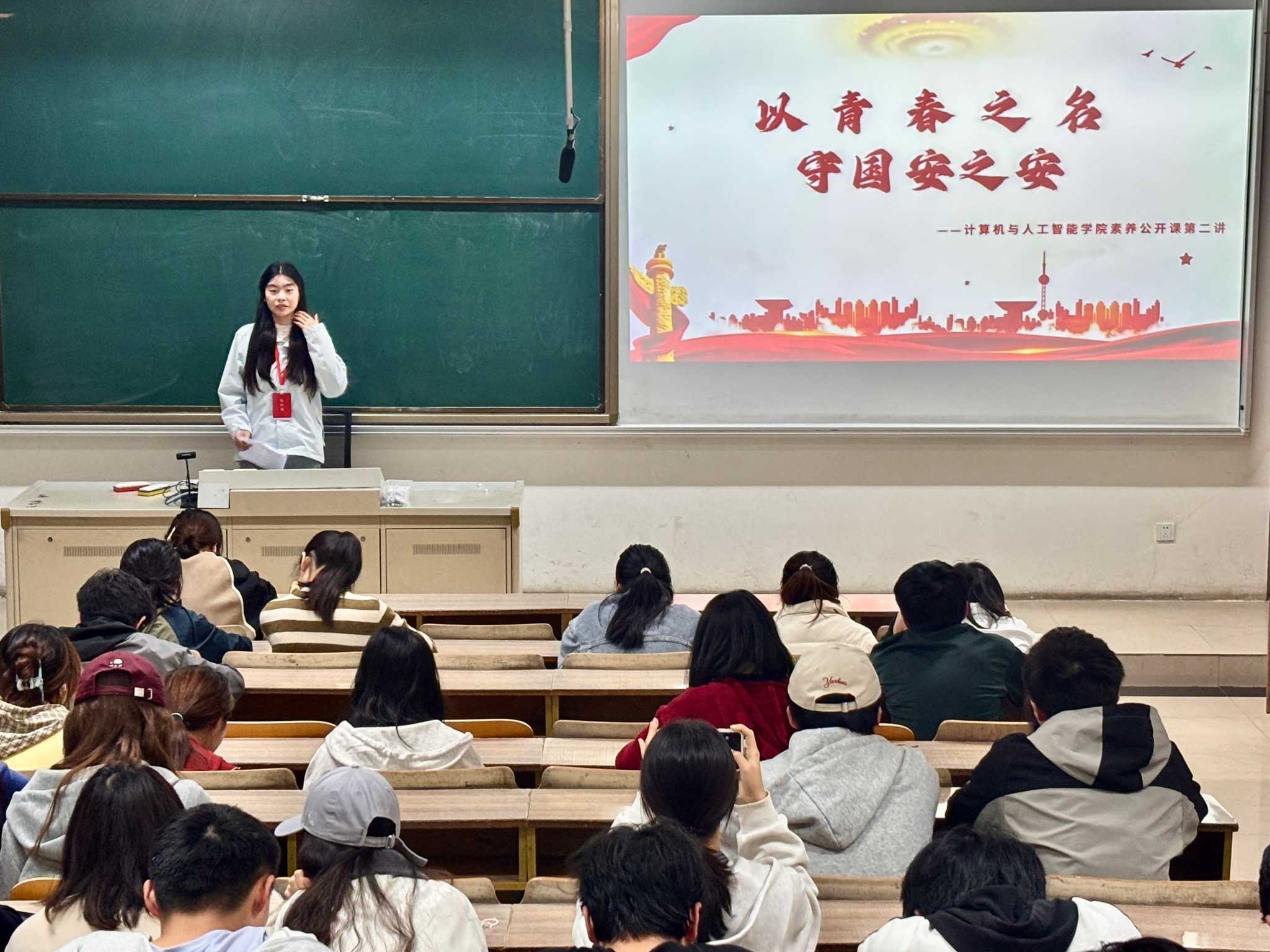 为深入贯彻总体国家安全观,引导青年学子筑牢国家安全思想防线,在全民国家安全教育日来临之际,计算机与人工智能学院于4月2日在博远楼105开展了“以青春之名,守国安之安”素养公开课第二讲,计算机与人工智能学院的同学们参与此次活动。