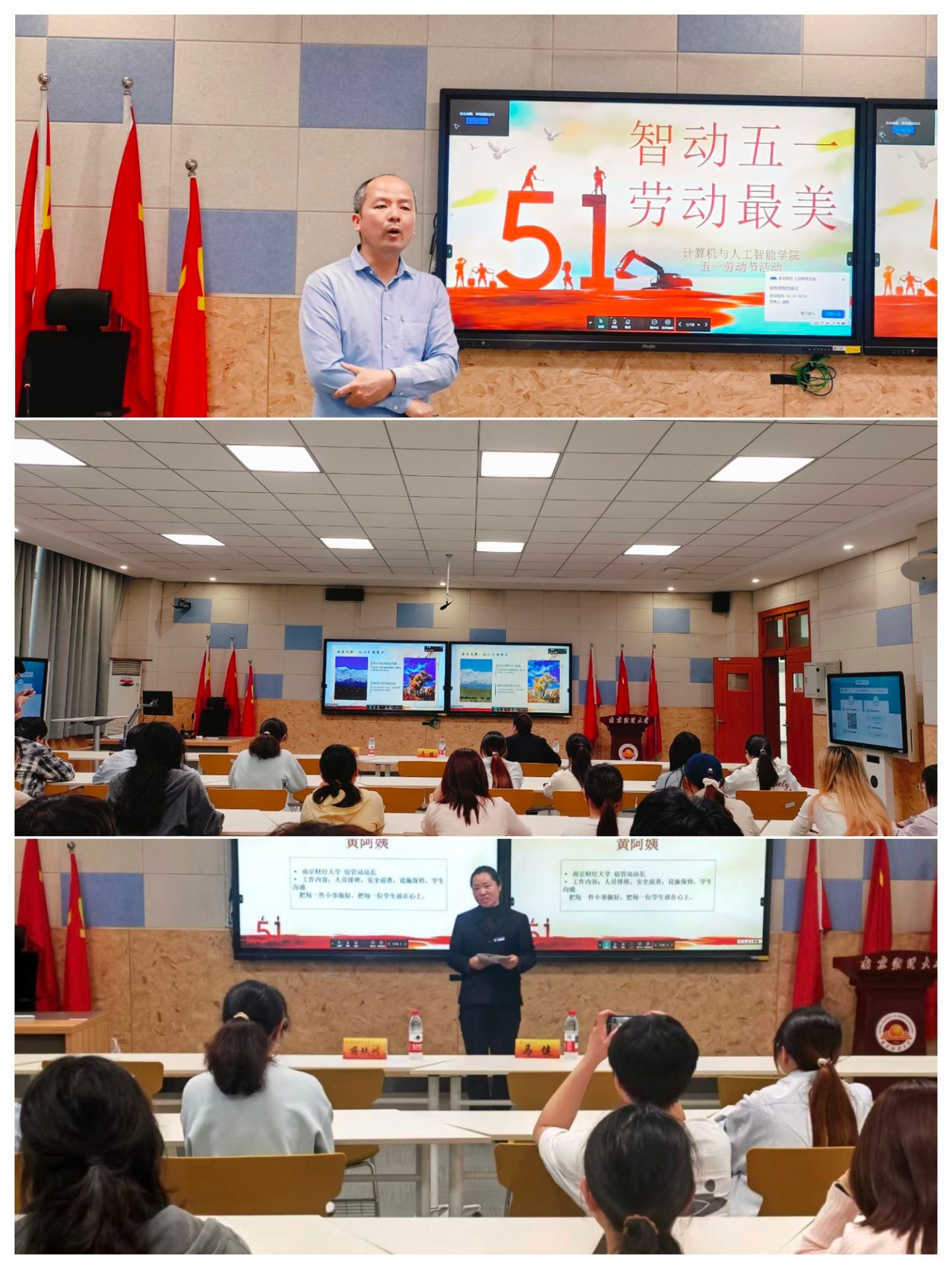 为弘扬劳动精神,引导青年学子将专业所学与劳动实践相结合,树立“科技助劳、专业报国”的责任意识,4月27日,计算机与人工智能学院“智动五一·劳动最美”劳动节主题活动在博文楼101教室顺利举行。学院党委副书记马健、副教授蒋玖川、1号宿管站站长黄阿姨、优秀毕业生欧阳煌煜及全院学生代表共同参与本次活动。